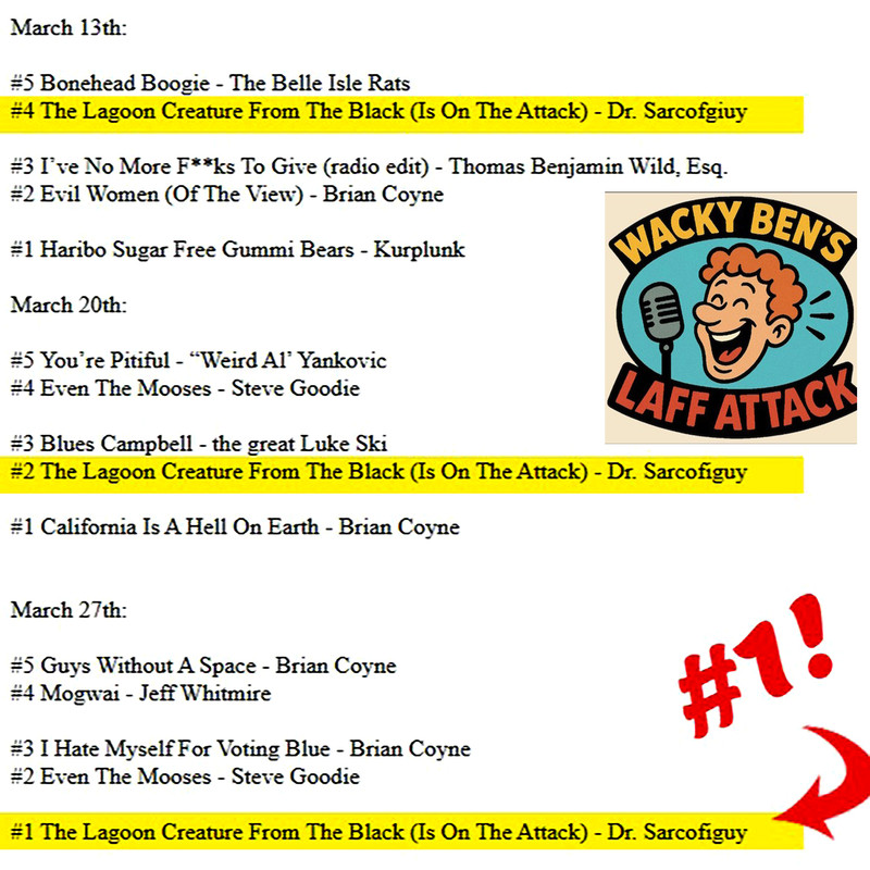 #1 on Wacky Ben's Laff Attack radio show, it's