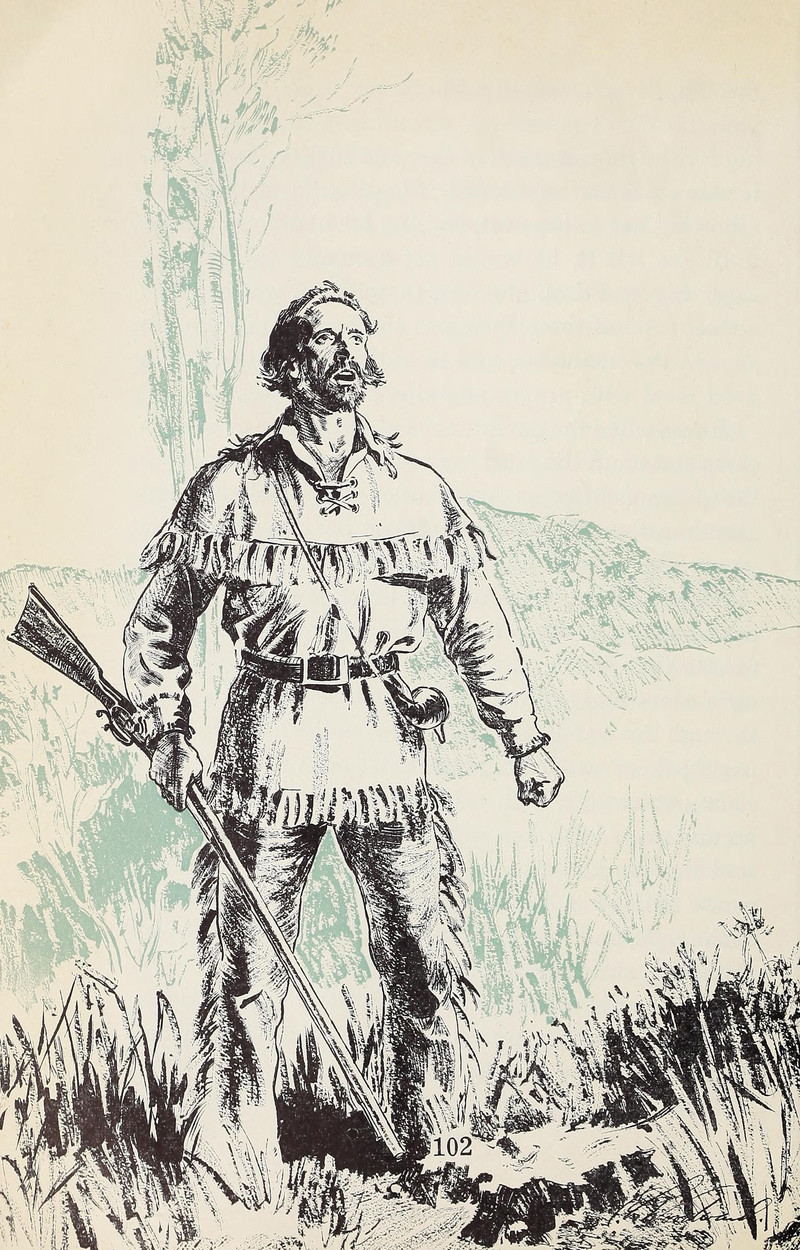 Davy Crockett.  From Reaching Our Goals by Horn, Goodykoontz & Snedaker and illustrated by Cleveland Woodward, 1940.