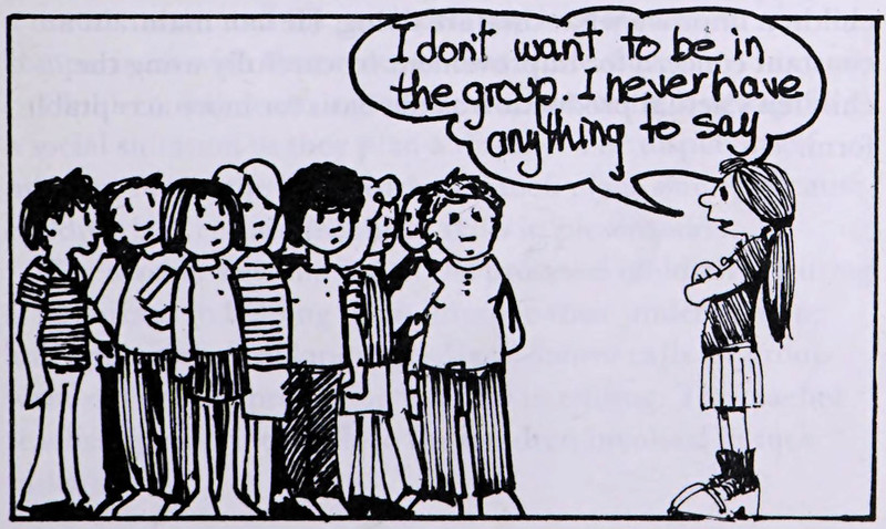 "I don't want to be in the group.  I never have anything to say."  From Magic Seasons, Teacher's Guidebook by Allinson & McInnes, 1972.