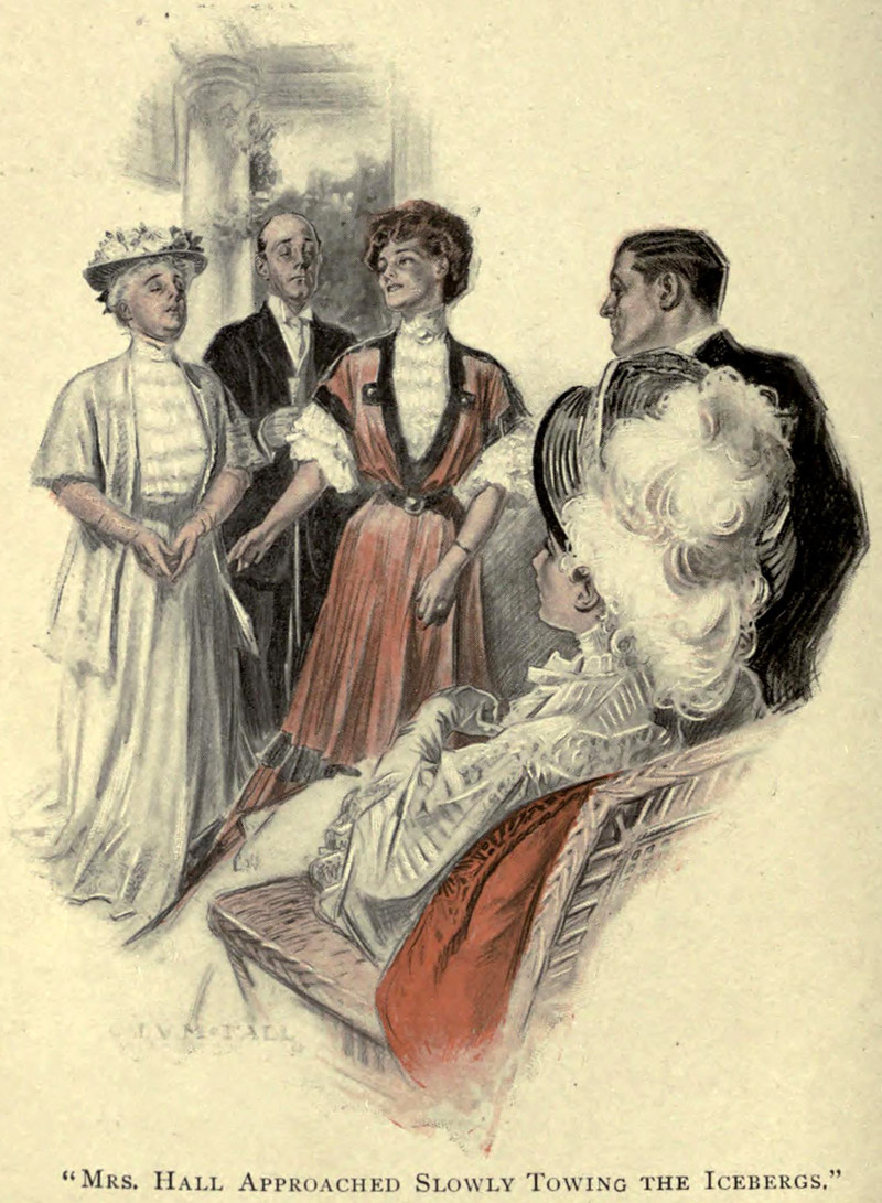 "Mrs. Hall approached slowly towing the icebergs." From The Climbing Courvatels by Edward W. Townsend and illustrated by J. V. McFall, 1909. (Hat tip: the winsome Jonathan Caws-Elwitt.)