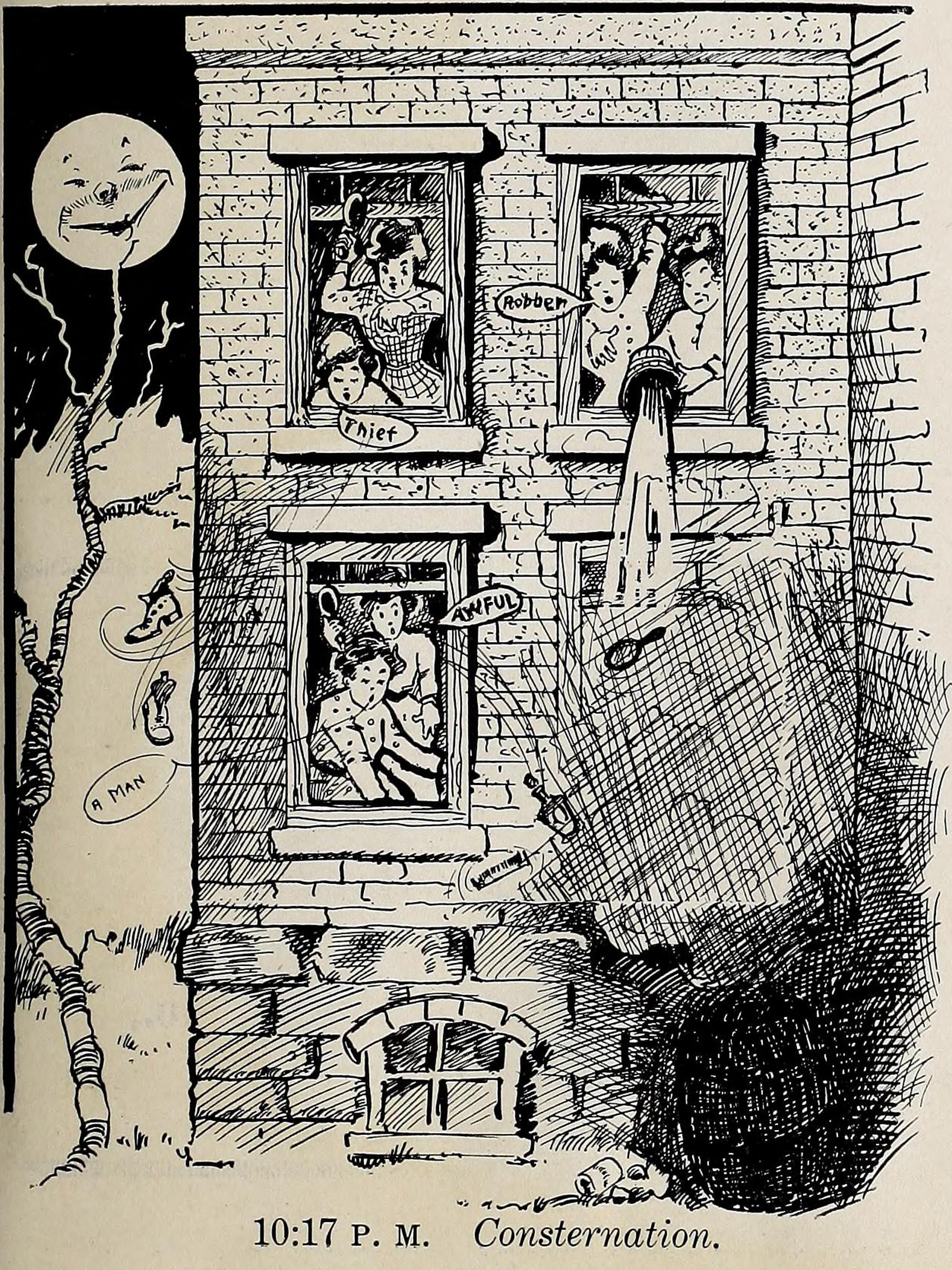 #vintage illustration #fire #vintage yearbook #yearbook #clock #1930s #illustration