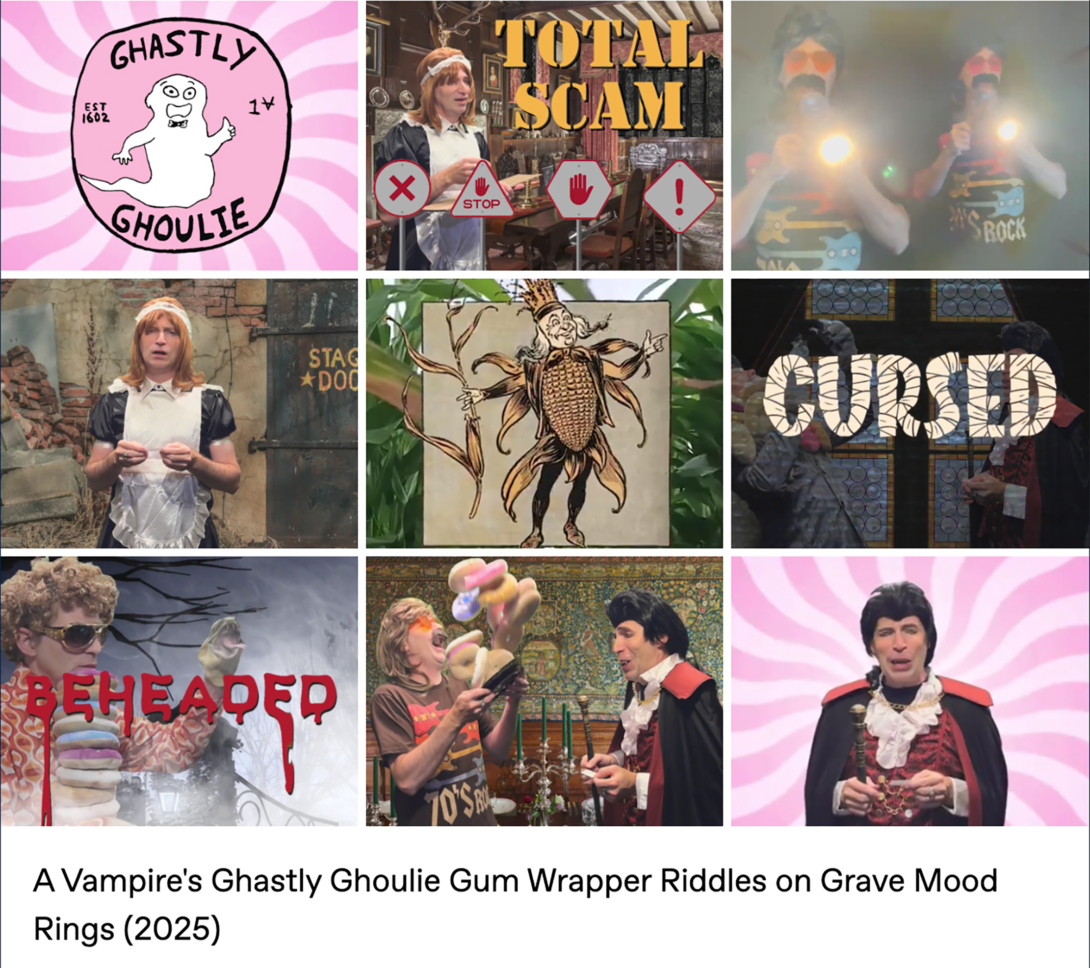 Parody analog horror meets 1970s tropes (like pet rocks, lava lamps, disco music, bell-bottom pants, mirror balls, and of course mood rings) in the web series Grave Mood Rings. It pokes fast fun at classic slow-moving Gothic soap operas like Dark Shadows and the Canadian series Strange Paradise. In addition to a vampiric Viscount, a castle is home to a groovy Doctor (a phlebotomist, naturally), a jolly housekeeper with her own laugh track, a werewolf Vicar, and an arch-nemesis riddler wearing a Sphinx mask. Corny wordplay, the occasional bizarre sing-a-long, and haunted doughnuts punctuate the proceedings, in the tradition of the sketch comedy of MadTV, Kids in the Hall, and SCTV. This episode was written by Jonathan Caws-Elwitt.