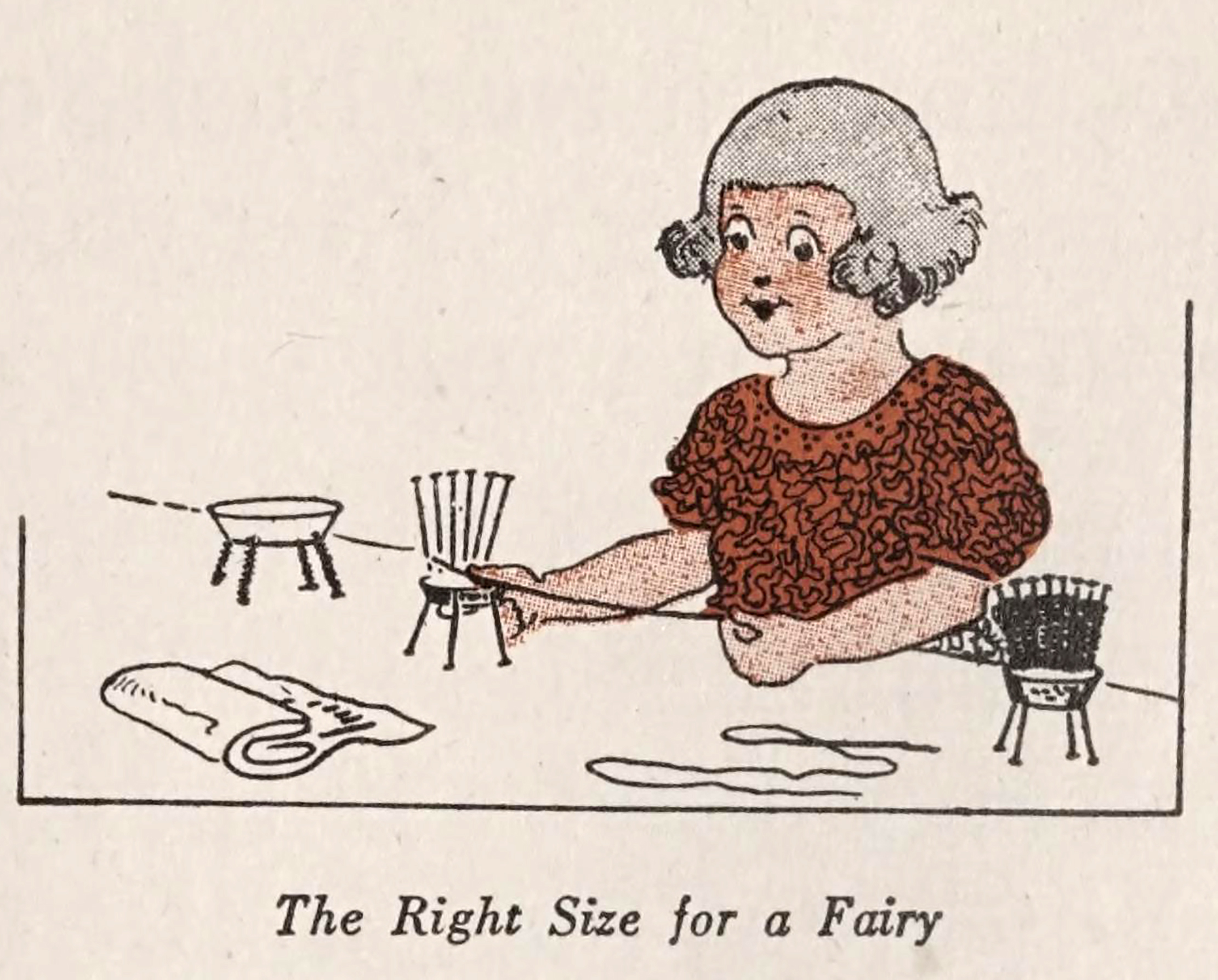 "The right size for a fairy."  From In and Out-Door Playgames by Carolyn Sherwin Bailey and illustrated by Cobb Shinn, 1923.