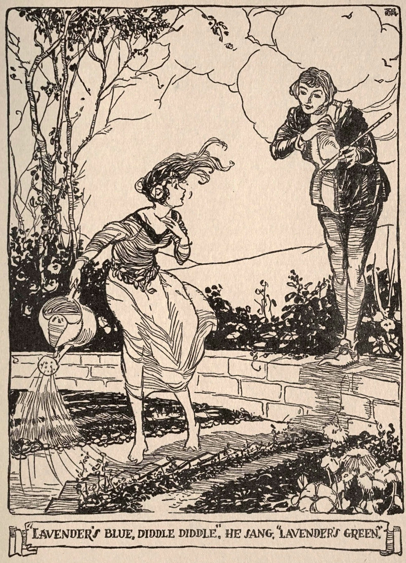 Though Wikipedia won't tell you this, "Lavender's Blue," the old English folk song, was the original "[You Say Tomato, I Say To-mah-to,] Let's Call the Whole Thing Off." "Lavender's blue, dilly dilly, lavender's green." Only in the folk song, they don't call the whole thing off just because they can't agree about the color of lavender. Interestingly, the lyrics in the 1670s version began with the colors the other way around: "Lavender's green, diddle, diddle, lavender's blue," so the first rhyme used to be about "you" and not a once or future "queen."