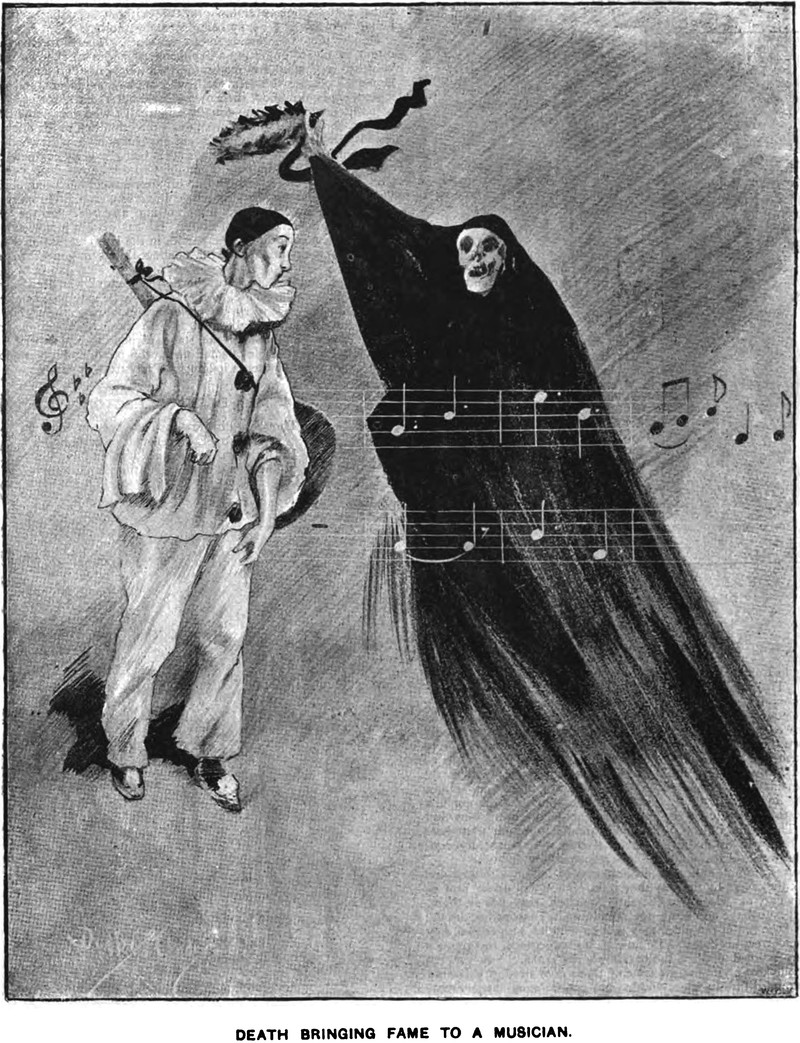 You know that artists tend to be more successful in death than in life.  Here's how it works -- "Death bringing fame to a musician."  From Pick Me Up, 1892.