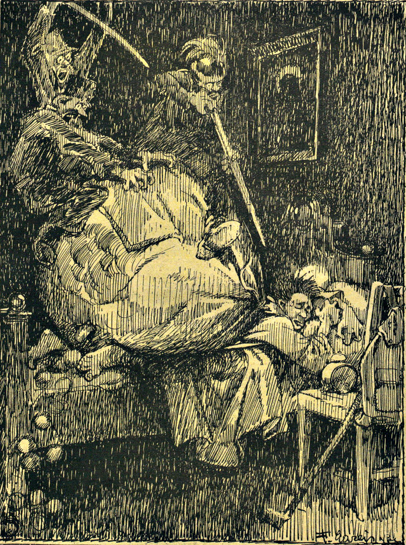 #vintage illustration #gluttony #strange dream #rude awakening #illustration #falling food