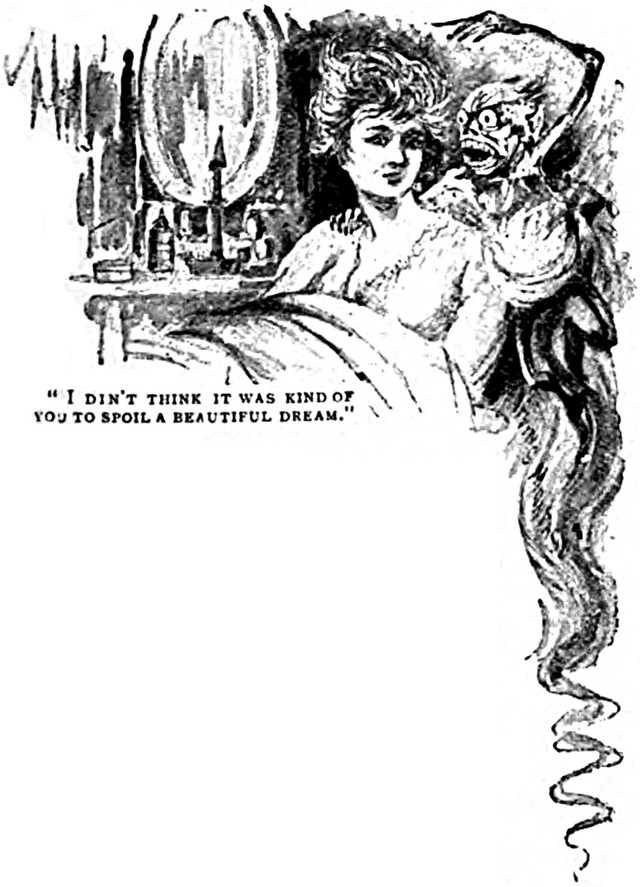 An illustration from a 1904 issue of Punch magazine. The caption reads: "Wonderful dream, as recounted by a gentleman who passed the night in a room hung with 'goblin tapestry.'" This should also be of interest: How to Believe in Your Elf.