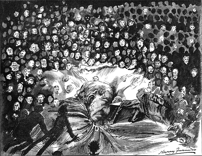 "I had been dreaming a crowded dream full of unfamiliar characters—people I hadn't had time, or whom it hadn't seemed necessary, to name or even make distinct from one another. It was a mob, practically, but its intent was unclear. For what purpose had they congregated?" — Rebecca Wolff, The Beginners (2011) This depiction of a crowded dream is from Punch, 1893.