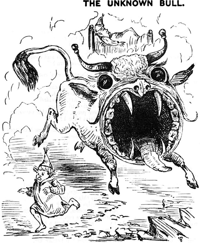 Here are two strange incarnations of tamed cockatrice-like animals, each partially equine. The first appears in a child's nightmare ( Punch, 1865). The second is ridden by a knife-wielding adult in broad daylight ( Punch, 1858).