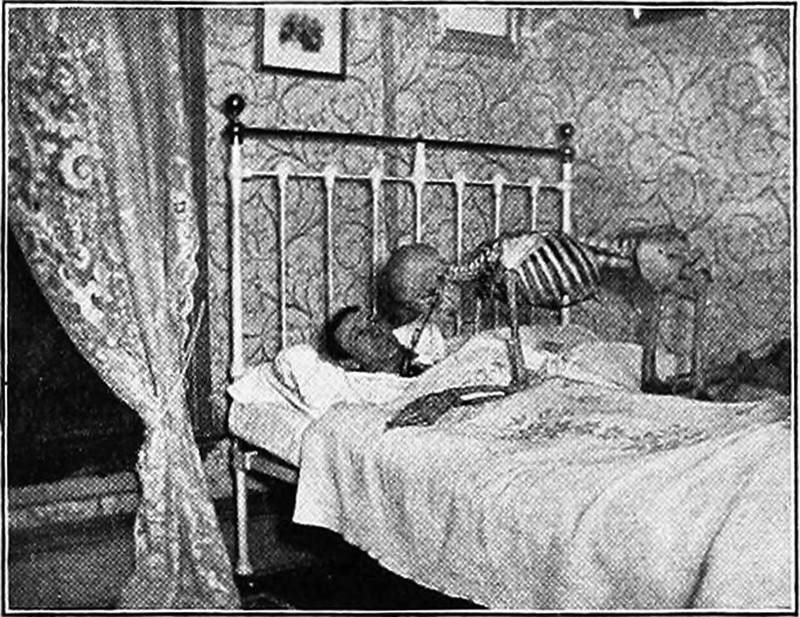 #vintage illustration #nightmare #skeleton #horror #vintage yearbook #yearbook #1920s #tables turned #illustration