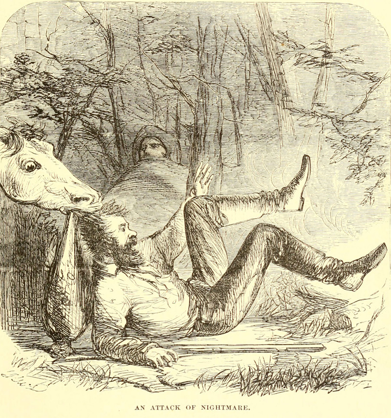 #vintage illustration #nightmare #horse #animal attack #illustration #1880s