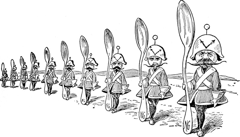 #vintage illustration #spoons #tiny men #illustration
