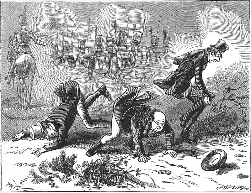 Punchinello, April 9, 1870.Ā [Notice all those hyphens in the caption. Ā Under a microscope, each hyphen is, in turn, a miniature orange peel and banana skin.]