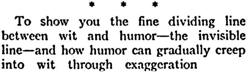 There's a fine, invisible line between wit and humor, according to Melville D. Landon (Eli Perkins), in The National Magazine, 1916.