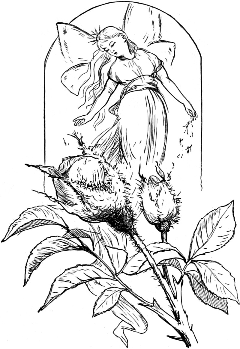 Pollen was once considered fairy gold. "Did you ever wish with it? Just touch your finger to the pollen, and then wish. After you wish, blow hard twice to get the pollen off. If it goes, your wish will come true, but if not, you will not have your wish" (E. M. J., "A March Ramble," Primary Education 1906). Our illustration of the pollen fairy appears in Blossoms by the Way by Carrie Adelaide Cooke, 1882.