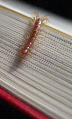 Here's a Kafkaesque retroactive lifetime goal: a centipede has been "temporarily waysided" from opening our dictionary of magic words. Technically and poetically, it's a "human centipede with 2 legs for a hundred spines." And the centipede's name is Pearl. Here's the entire list of unopened books into which the centipede may or may not make headway.