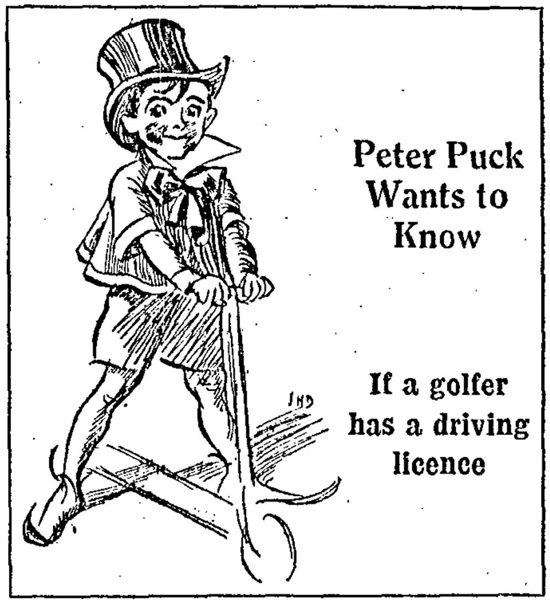 "Peter Puck wants to know if a golfer has a driving licence." From The Children's Newspaper, 1935.