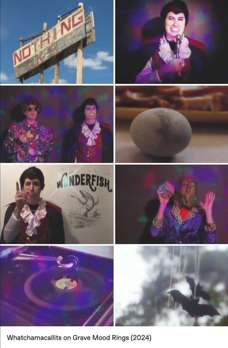 Mixing vampire humor and 1970s tropes (like pet rocks, lava lamps, disco music, bell-bottom pants, mirror balls, and of course mood rings), the web series Grave Mood Rings pokes fast fun at classic slow-moving Gothic soap operas like Dark Shadows and the Canadian series Strange Paradise. In addition to a vampiric Viscount, a castle is home to a groovy Doctor (a phlebotomist, naturally), a jolly housekeeper with her own laugh track, a werewolf Vicar, and an arch-nemesis riddler wearing a Sphinx mask. Corny wordplay, the occasional bizarre sing-a-long, and haunted doughnuts punctuate the proceedings, in the tradition of the sketch comedy of MadTV, Kids in the Hall, and SCTV.