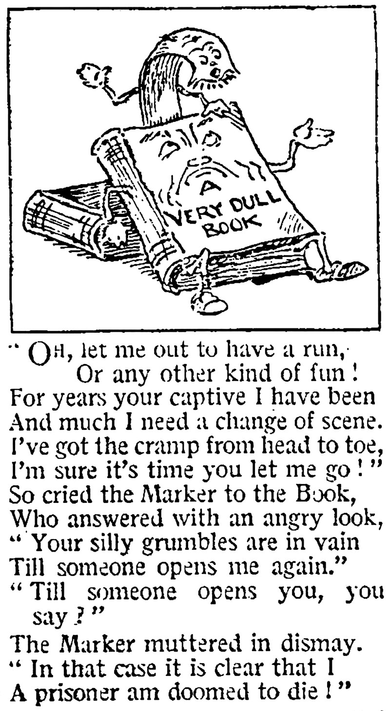 Most poems are fashioned with pencils or ink, but the finer ones are oil painted. Unless this title is likening poems to sardines in oil, as opposed to sardines in mustard. (We prefer our sardine poems in mustard.) From Poems In Oil by Will Ferrell, 1919.