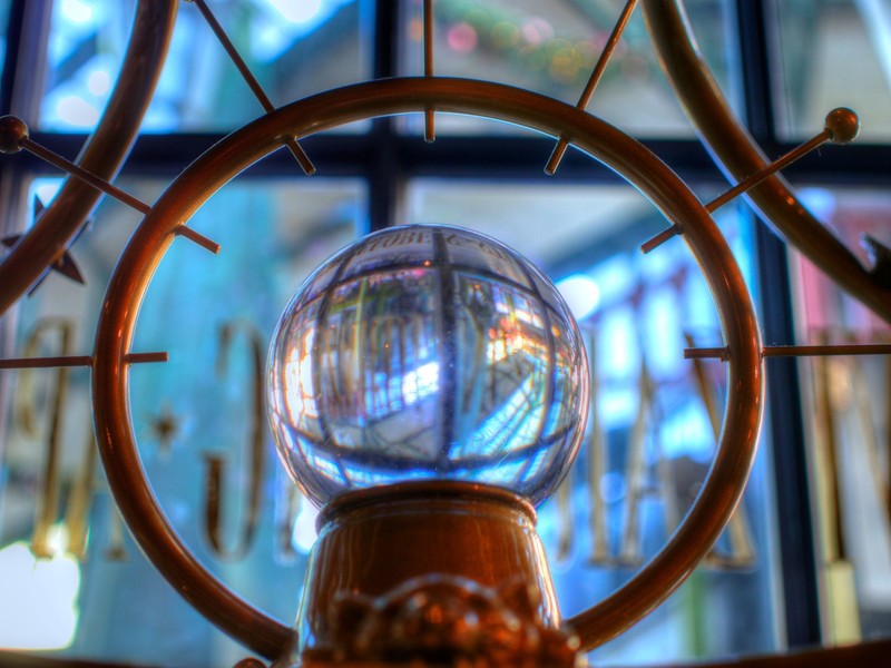 One of our greatest pleasures lies in capturing on film the mysteries of crystal balls. These eight examples are of favorite crystal balls within cabinets of curiosities, all located within ... well, many will recognize the location! (Anyone who doesn't know but would like to should drop us a line, and we'll gladly reveal all.) The first six of these photos were taken in near complete darkness, the balls themselves nearly undetectable by the naked eye. On occasion we take portraits of crystal balls in the collections of seers and aficianados (or "buffs," as they might better be called).