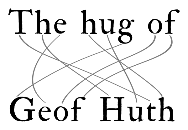 Eerie prescience! And yet in this particular case we must credit the mysteries inherent in words more than our own arcane powers. Back in 2011 [ original post here], we created an anagram in honor of the poet Geof Huth, in which we found that the letters of his name, when scrambled in front of his name, spelled "The hug of Geof Huth." Just over 8 years later, the poet revealed in his own blog post that in fact the issue of a hug was the defining moment of his entire life, the day that he became his own person. Huth revealed in May 2019: