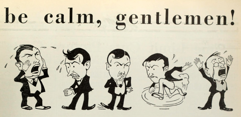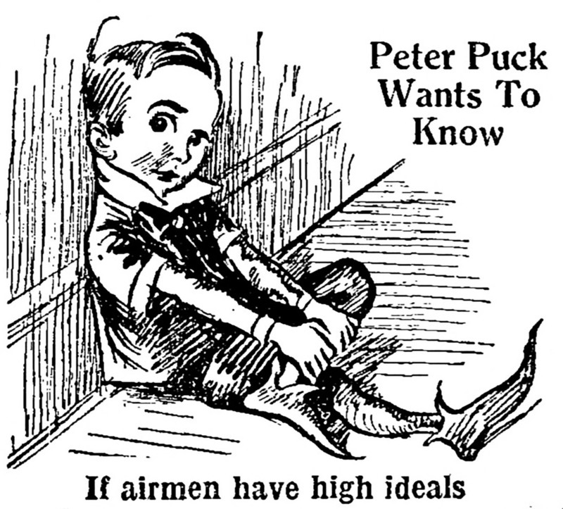 The cartoon model is "pretty as a picture," and the picture that she's pretty as is the mascot of the face-powder being advertised. From Vanity Fair, April 1916.