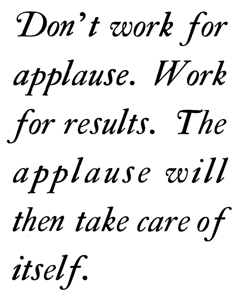 "Don't work for applause. Work for results. The applause will then take care of itself." From The Kodak Magazine, 1920.