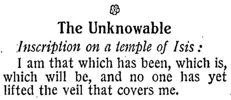 "I am that which has been, which is, which will be, and no one has yet lifted the veil that covers me." From The Children's Newspaper, 1934.