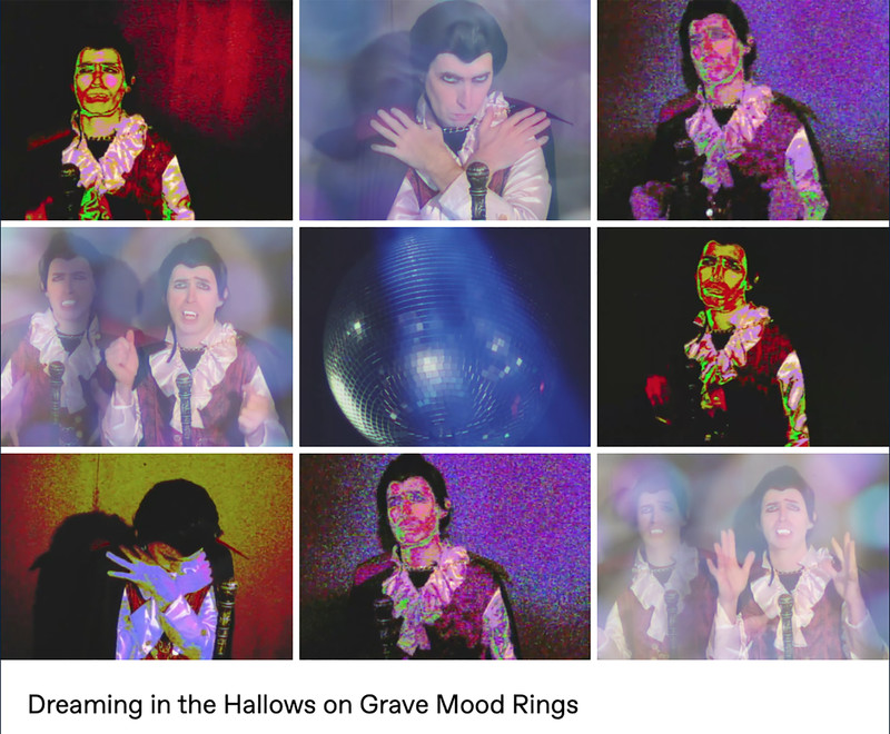 Parody analog horror meets 1970s tropes (like pet rocks, lava lamps, disco music, bell-bottom pants, mirror balls, and of course mood rings) in the web series Grave Mood Rings. It pokes fast fun at classic slow-moving Gothic soap operas like Dark Shadows and the Canadian series Strange Paradise. In addition to a vampiric Viscount, a castle is home to a groovy Doctor (a phlebotomist, naturally), a jolly housekeeper with her own laugh track, a werewolf Vicar, and an arch-nemesis riddler wearing a Sphinx mask. Corny wordplay, the occasional bizarre sing-a-long, and haunted doughnuts punctuate the proceedings, in the tradition of the sketch comedy of MadTV, Kids in the Hall, and SCTV.