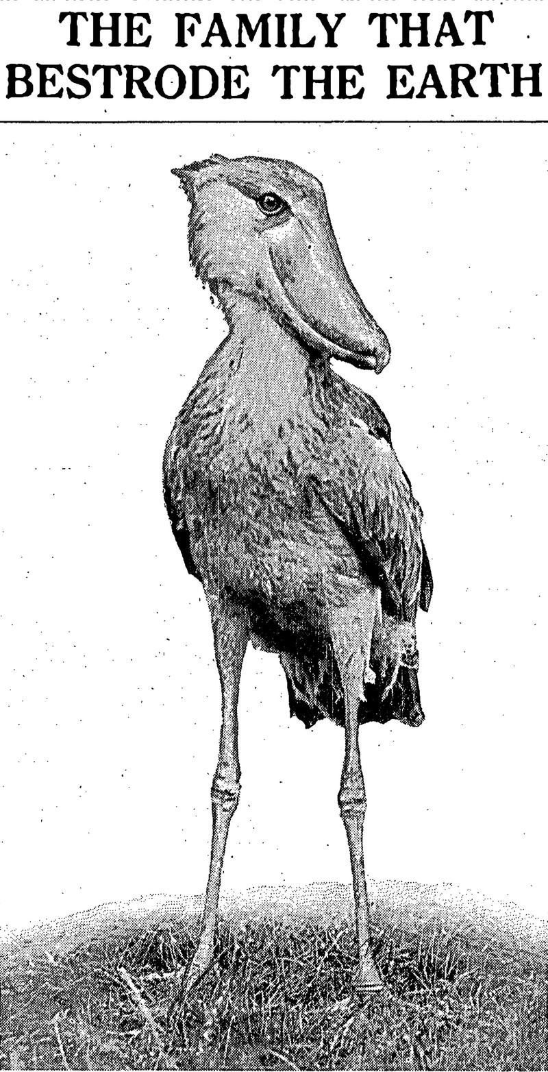 Shoebill.  From The Children's Newspaper, 1935.