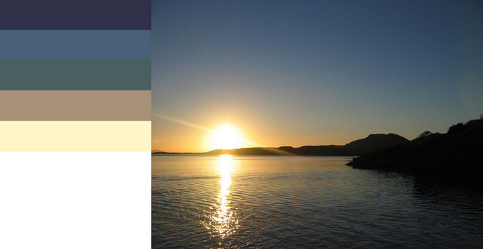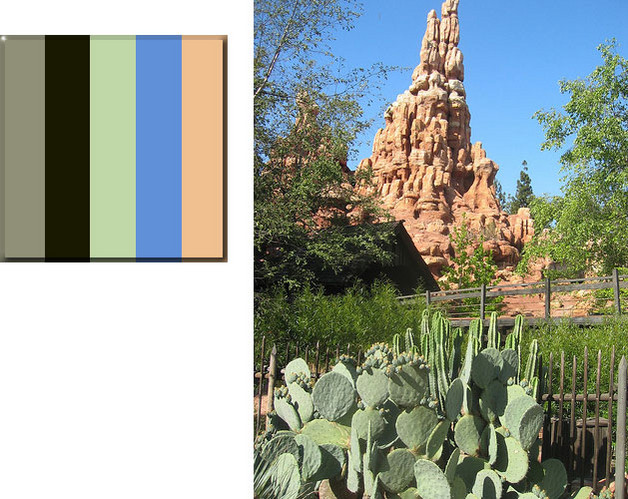 Update on my " Spooky Pagoda" color palette: The artist Reverbe explains how "Spooky Pagoda" inspired the " Spooky Xmas Tree" palette: Prof. Oddfellow's excellent Spooky Pagoda palette lit a fire in my brain as I struggled to remember a spooky pagoda I've seen before. Then I remembered: there's always a fantastic light display in the local botanical garden at Christmastime; unfortunately, in the Japanese themed garden, they forgo the Christmas lights and use large red and green floodlights instead. The result is creepy as all get out. Seeing a bare-limbed Japanese maple under blinding red light gives one the idea what the shrubbery in hell must be like. Anyway, thanks to Prof. Oddfellow for reminding me that interesting colors can be found in creepy photos and not just the "beauty shots."