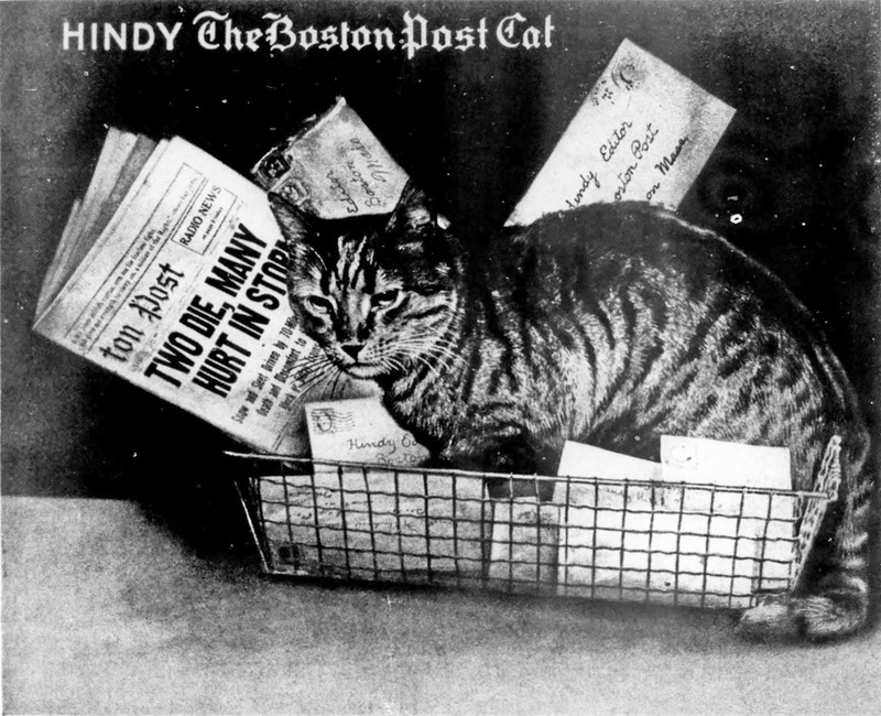 "Hindy, the Boston Post cat."  From the Massachusetts Society for the Prevention of Cruelty to Animals' Our Dumb Animals, 1923.