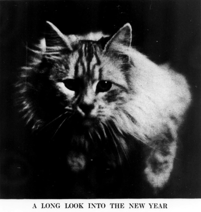 "A long look into the new year."  From the Massachusetts Society for the Prevention of Cruelty to Animals' Our Dumb Animals magazine, 1925.