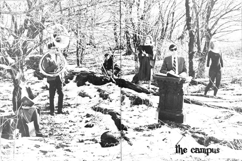 We scanned this photo with our custom Uncanny Detector app to see if it is, indeed, haunted. The reading came back "Arcane," in the sense of "impenetrable." The strange light patterns in the grass are mysterious but not indubitably ghosts. From Salve Regina's 1983 yearbook.