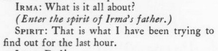[In a J. M. Barrie spoof, a roster of forest fairies includes one called Spindrift and one called Spendthrift.]