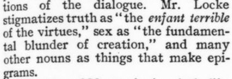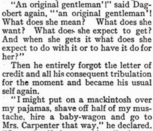 ***WIT. My dear, I ask ten thousand pardons. Gad, I have forgot what I was going to say to you.MIRA. I thank you heartily, heartily.***[Is this the Restoration equivalent of having oneself paged at the Beverly Hills Hotel swimming pool?]As soon as your back was turned—whip he was gone; then trip to his lodging, clap on a hood and scarf and a mask, slap into a hackney-coach, and drive hither to the door again in a trice; where he would send in for himself; that I mean, call for himself, wait for himself, nay, and what’s more, not finding himself, sometimes leave a letter for himself.***