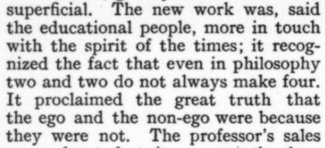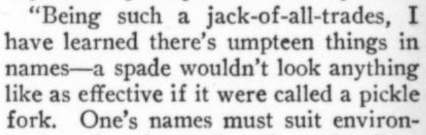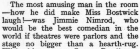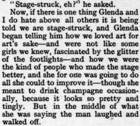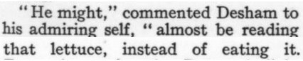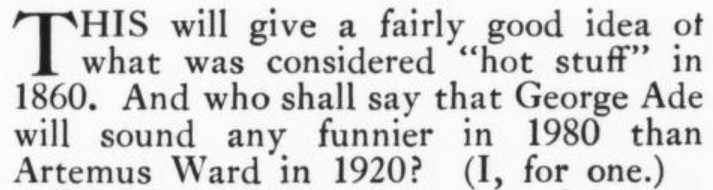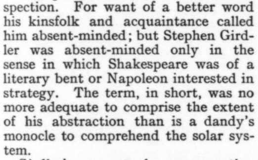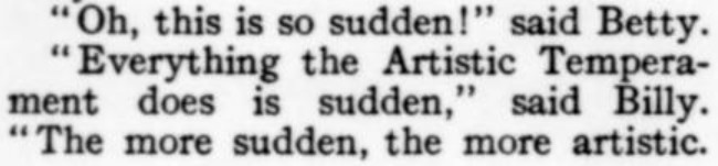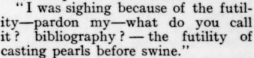 [Three more snippets attached. The premise is that the protagonist is trying to locate a woman whom he's seen only in a photo, in which she's identified herself only by the presumed pet name of Nuggles. When they ultimately meet, and he's embarrassed to have blurted out "Nuggles" in his surprise and joy, he explains it away by the ploy of saying it's a positive expletive, originating with the Greek. She, for her part, doesn't recognize the word ("What was it--Guggles?"); and it also turns out she's read the novel he's recently written in which he's called the heroine Nuggles in her honor...and so he has to double down on the word's provenance. Ha! And it Just Goes to Show: The only reason I bothered with this story, as I glanced through the Smart Set table of contents, was a faint hope that a story called "Nuggles" would pay off. I was prepared for some tedious disappointment like a sea yarn or a dog story--but hooray!]