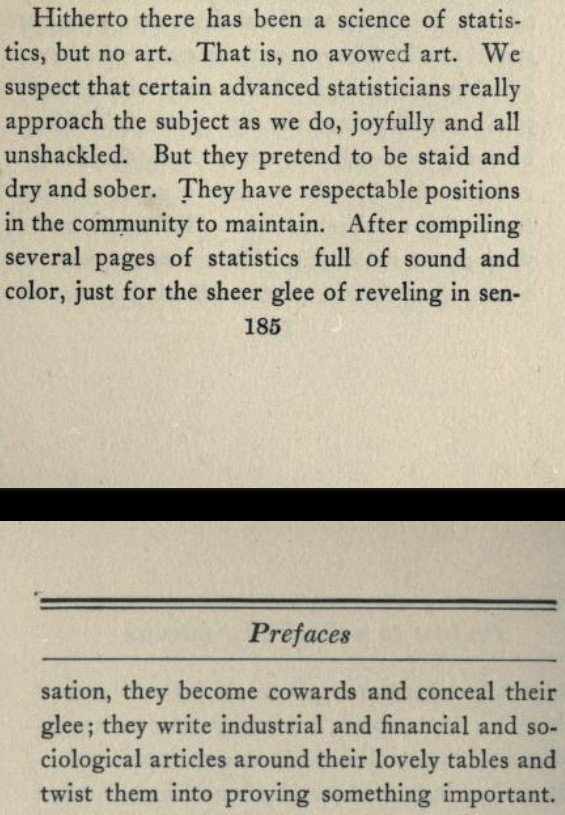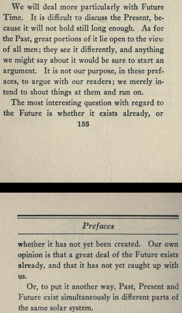 [Clearly, the publishers of this book were playing a long game. They took out a display ad to promote it in the June 1919 issue of Vanity Fair, and less than 104 years later I came along, got lured in by the ad, and enjoyed the book for free in an out-of-copyright web archive. In the past I've never warmed up to Marquis, but the idea of a book entirely composed of prefaces to imaginary books seemed worth investigating. (And haven't we encountered *another* book of this nature--some other book of introductions to nonexistent books?) Snippets attached.]