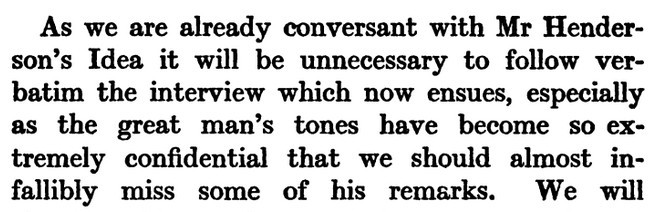***“He calls it the house beautiful, you know.”“Why not the beautiful house?” asked Wayne, still more coldly.“Oh, he gets everything upside down.”***A thrill passed completely through Wayne, and probably came out on the other side.***“And, as it is the little things that are the most precious, so nothing, which is less than the very least, is precious beyond price.”***“Art is an art.” With which epigram he slowly closed his eyes....“Art,” continued the poet, opening his heavy lids with a large, sweet smile, “Art is above Art, but Art is never below Art. Art, to be Art, must be artless. That is a very precious thought—very, very precious. Thank you for understanding me—thank you.”***“You ask me what is Art. I will tell you; it is this!” And the poet, inverting his thumb, pressed it into the air. Then, carefully inspecting the dent he had made in the atmosphere, he erased it with a gesture and folded his arms.***A mechanical smile struggled to break out, but it was not the smile, any more than glucose is sugar.***A wan young man whose face figured only as a by-product of his hair whispered “Hush!”***“Verse is a necklace of tinted sounds strung idly, yet lovingly, upon stray tinseled threads of thought.”***“Let me cite, as an example, those beautiful verses of Henry Haynes,” he replied gravely.TO BE OR NOT TO BEI’d rather be a Could Be,If I can not be an Are;For a Could Be is a May Be,With a chance of touching par.I had rather be a Has BeenThan a Might Have Been, by far;For a Might Be is a Hasn’t BeenBut a Has was once an Are!Also an Are is Is and Am;A Was was all of these;So I’d rather be a Has BeenThan a Hasn’t, if you please.[I suspect Chambers made that poem--and its purported author--up; the only famous Henry Haynes I find is an entertainer who came later. Bernard Shaw in this book is represented by an offstage playwright* called Barnard Haw, so maybe "Henry Haynes" is a spoof on Heinrich Heine or someone? I also learned that this verse is widely misattributed to Milton Berle (who was born several years after this book was published). Though that may have happened in the usual way, I suppose in this case Berle himself might be to blame, as he was notorious for appropriating material.][*Well, of course the playwright usually remains offstage, but this one is doubly offstage.]***[Bonus: This is another book that includes Wodehousian bickering-telegram business. Iole was published in 1905, when I believe PGW was literarily still in short pants, that is to say mostly writing school stories--so I bet Chambers anticipated him.]