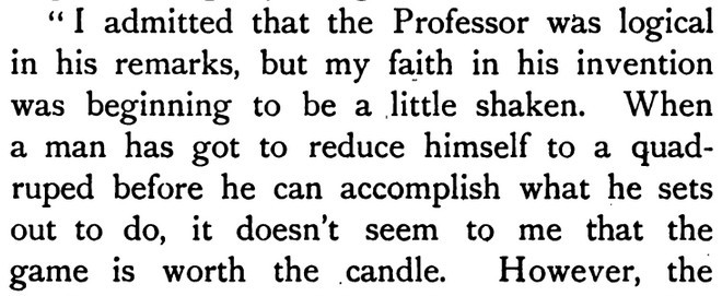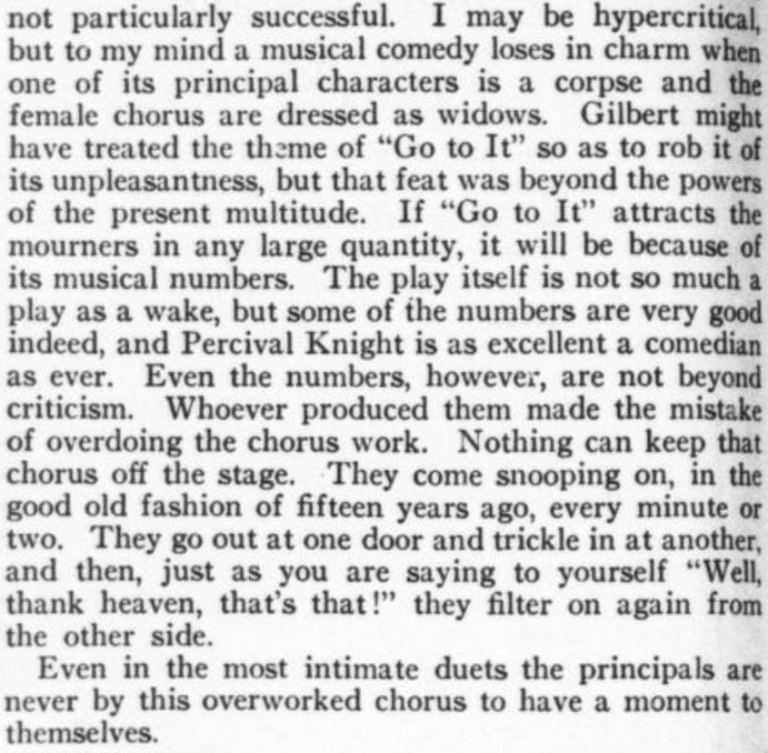 Then Wodehouse (if my guess is correct as to who the pseudonymous author really is) does the math on reading from left to right. (Cf. moments in the PGW canon such as, "Reading from left to right, the contents of the bed consisted of Pauline Stoker in my heliotrope pyjamas with the old gold stripe.") Three additional snippets come from PGW's theater pieces.