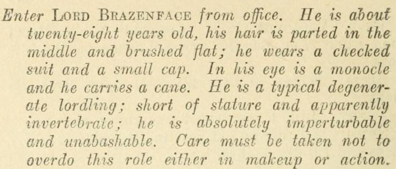 2. At this point, I said to myself, "No, for goodness' sake, you wouldn't want to overdo it and turn Lord Brazenface into some kind of caricature."