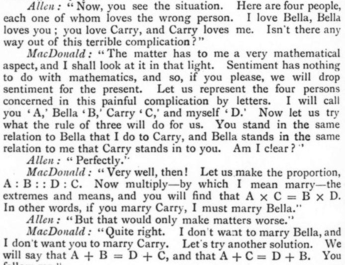 *** TRIPTOLEMUS: I soon found myself at the abode of my aforesaid uncle Cockletop, who, on my taking a chair on a Cheshire cheese, at once informed me that his motive in telegraphing for me, was to unite me in the bonds of wedlock with a certain Miss Caroline Bunny; his words literally transfixed me to my chair—my cheese I mean. ***
