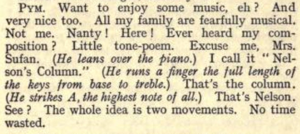 *** "He fascinates by being sedulously unexpected. Listen to his anthem. He is beginning to play it. How unexpected it is. It always does what the ear wants, and all modern music does what the ear does not want. Therefore the ear always expects to be disappointed, and Lord Reggie astonishes it by never disappointing it."