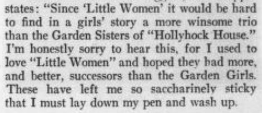 [later] The anthem passed off fairly well, although Jimmy Sands went rather flat, perhaps owing to the fact that none of the party from the cottage so much as glanced at him during his performance. "He evidently made allowance for our staring," Madame Valtesi said afterwards. [I think that may be my favorite bit in the book!]