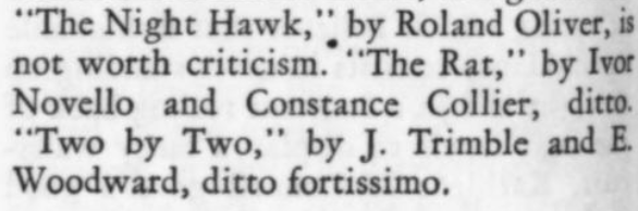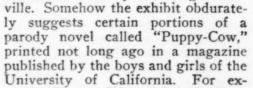 [Most of these are from a theater column called "The Pantaloon Parnassus"! I would say "Puppy-Cow" raises more questions than it answers. (Can we connect the dots to little do[g]ies? Or to the Mac Classic dogcow?)]