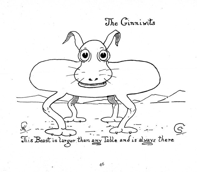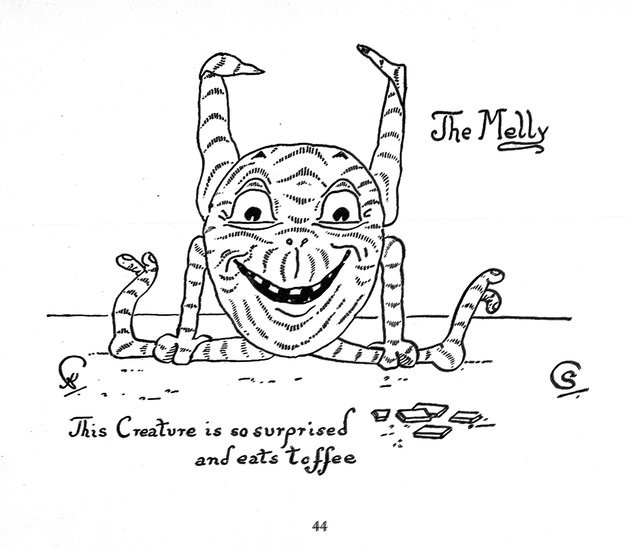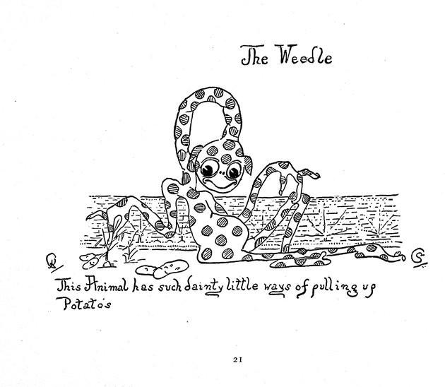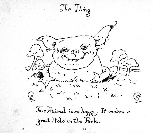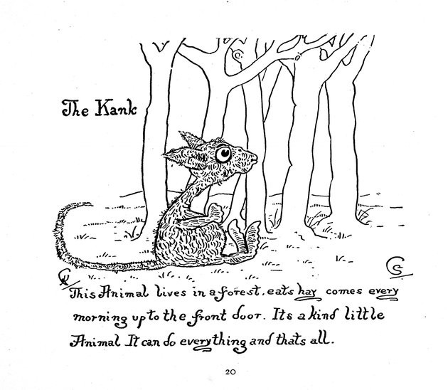 "I have been asked to say something about the creatures that live in Animal Land where there are no People. My daughter Sybil, aged four, began to describe them to me about a year ago, but as I personally know nothing about them except that I draw them from her very graphic descriptions, I thought I had better write down a few of the facts about them, collected by her, in her own words:—'Animal Land where there are no People is quite near, only you can’t see it. It is a kind of Garden Cage, with the North Pole and the sea always roughling and wavy. In the summer they like to be hotter and hotter, and in the winter colder and colder. They live by the North Pole and in the leafy places near. It is always light there, always day, they climb the poles and always play. That is Animal Land.'"KATHARINE CORBETJanuary 1897[Some highlights include precursors to Yoda, Pikachu, and the Moog.]https://ufdc.ufl.edu/UF00086398/00001/flipbook