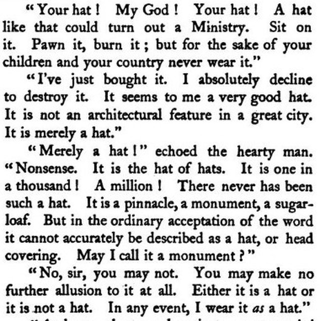 *** “A well-bred Englishwoman,” my hostess dictatorially observed, “never talks of herself. She tactfully makes the person to whom she is talking the subject of conversation.” “But,” said I, “if the person to whom she is talking is also well-bred, he must reject that subject, and tactfully talk about the first speaker. This must bring about a deadlock.”