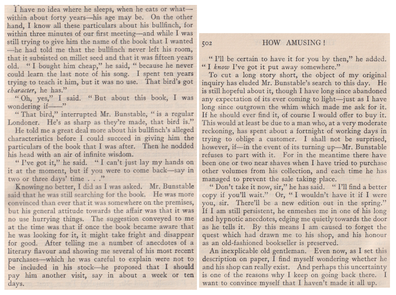 [This piece was like something straight out of early Wodehouse. (Mackail was a good friend and, of course, admirer of PGW.)]***[This follows a long-winded rhetorical question on the part of the narrator.]And when we put a question in that particular tone of voice, you should know quite well that we haven't the smallest intention of waiting for any answer.***"A very pleasant young lady, sir, if I may--""Pleasant!...My dear Francis, if you call Miss Melbury pleasant, you'd call Methuselah middle-aged.***"I worship the very air she walks on, and the ground she breathes."***"My uncle and old Melbury are both what's-its-names. You know. Not shop-walkers, but--""Churchwardens, sir?""That's it."***Bonus: a character called Miss Pansy Pocock
