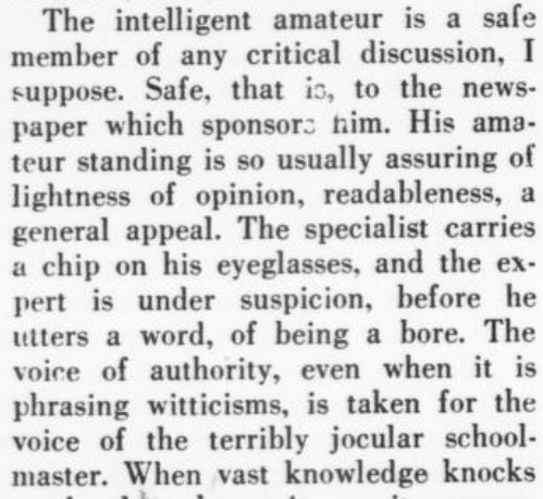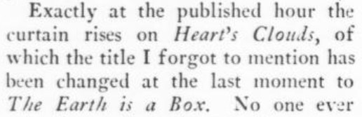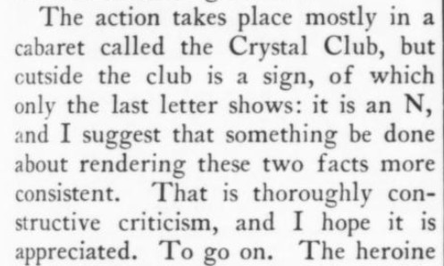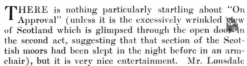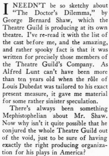 *** Somebody...described the dramatic articles of Mr. Lincoln Vesh as "cwitticisms."