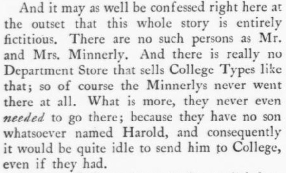 Bonus names: "Uncle Chubbychops" (a hypothetical elixir advertiser) Miss Niblick the Tinberry-Vennears Mr. Gordon Gordon